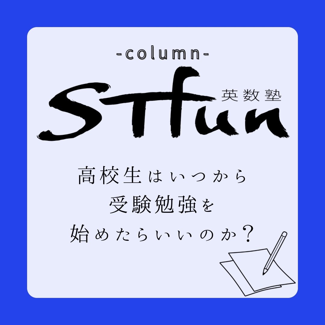 2020年07月23日 塾長コラム 高校生はいつから受験勉強を始めたらいいのか? STfunの藤間(とうま)です。 7月は高校二年生の受験勉強キックオフでした! 大学受験を考えている生徒は、全員ではありませんが、二年生の夏か... /続きを読む