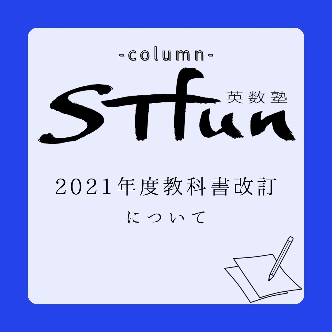 2021年02月08日 塾長コラム 2021年度教科書改訂について STfunの藤間です! 今回は、2021年度教科書改訂についてお話します。 今年度、つまり2020年度に、小学校では... /続きを読む